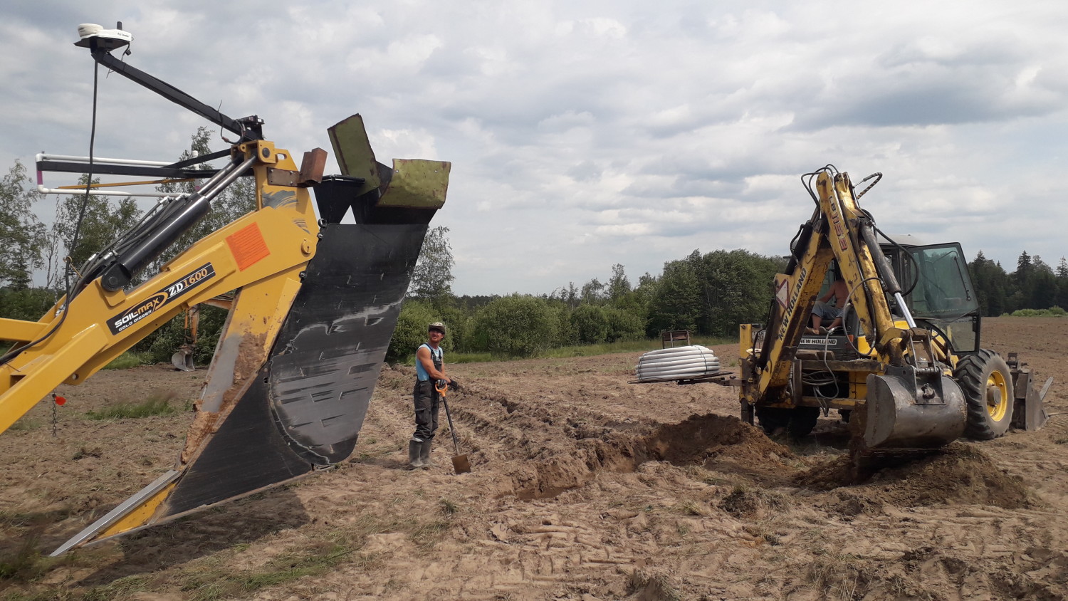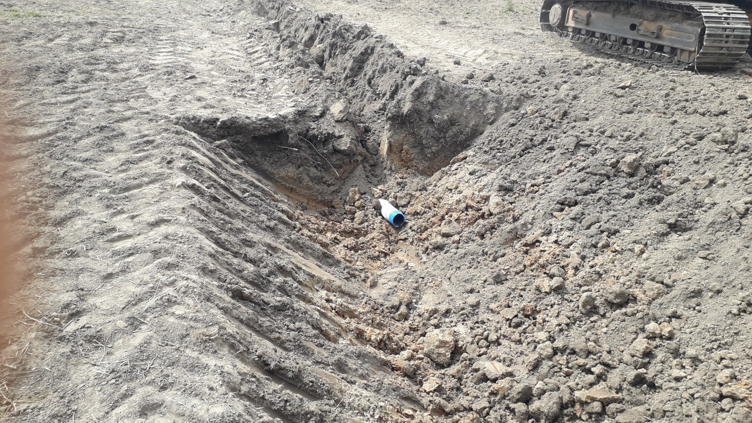 3. Kuna siin paigladati drenaažid kollektorist eemale, on vajalik mõnemeetrine kaevis drenaaži alustamiseks. Hea, kui juures on abiline, kes aitab ekskavaatoril kollektori leida.